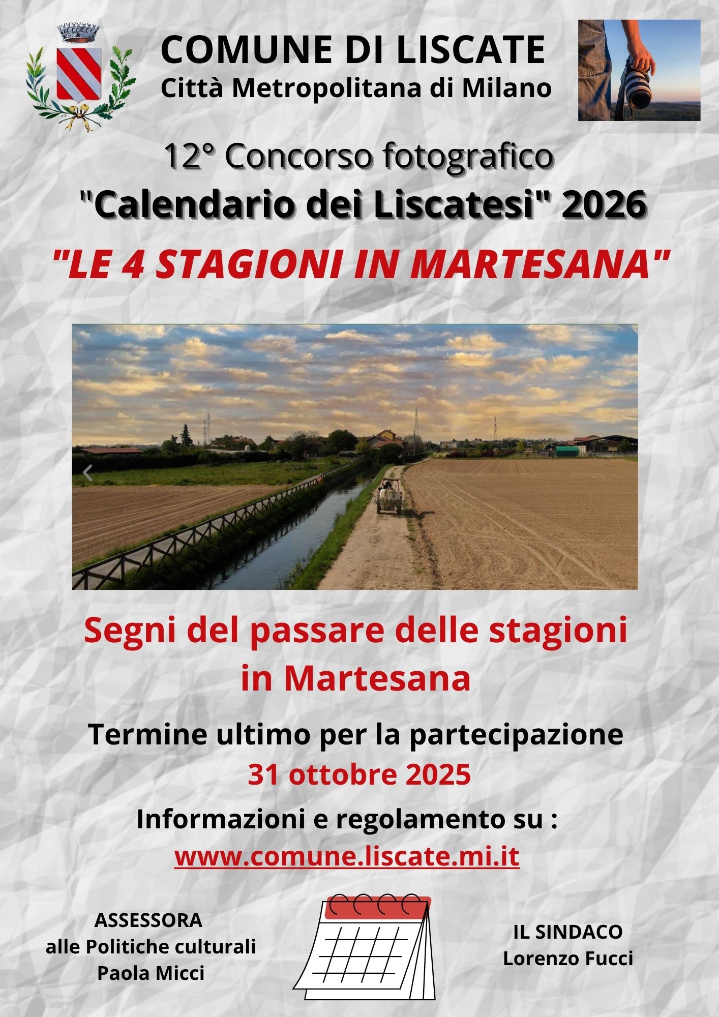 12° concorso fotografico “Calendario dei Liscatesi 2026” – Scadenza invio fotografie: Venerdì 31 ottobre 2025