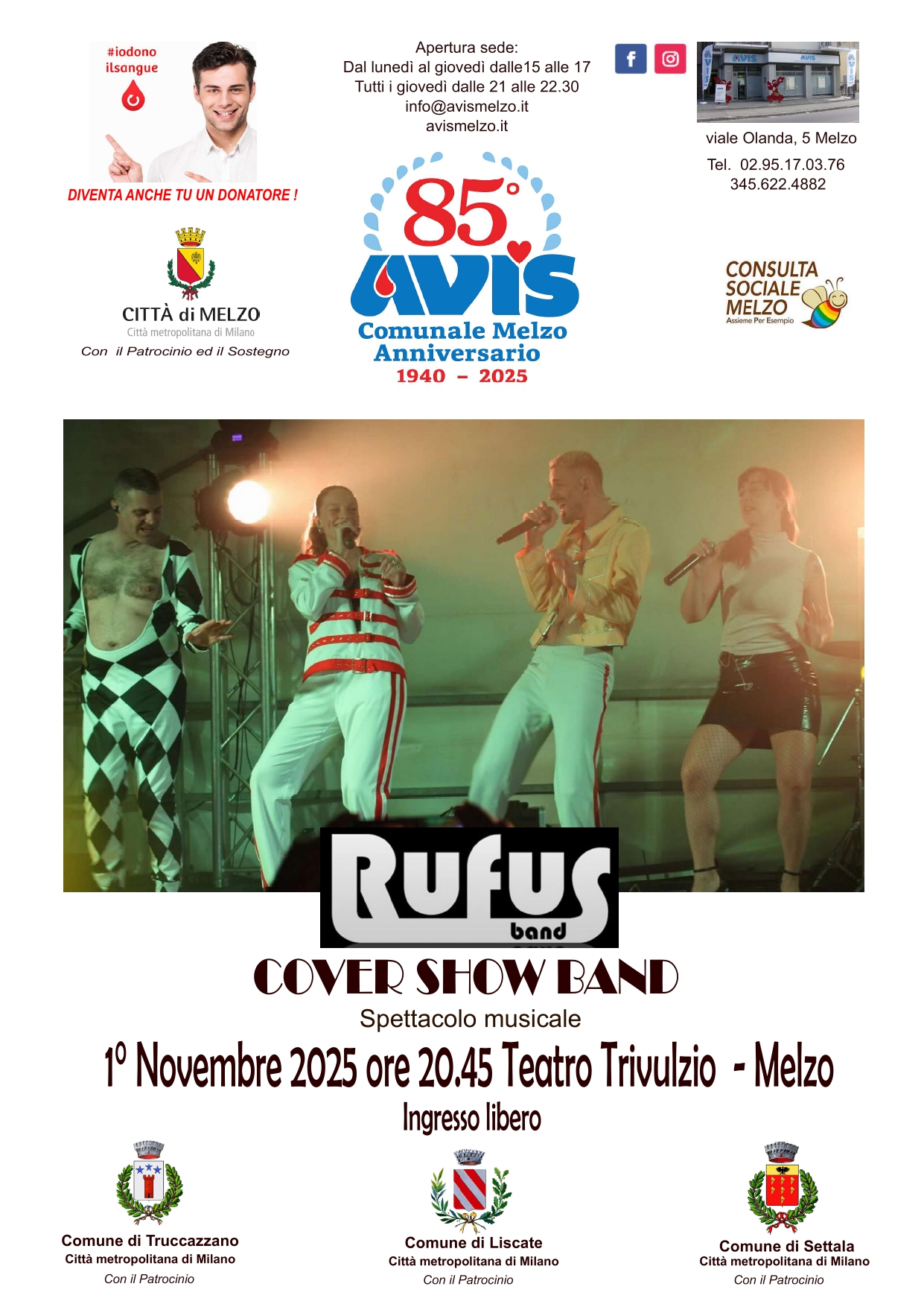 85° ANNIVERSARIO AVIS COMUNALE MELZO – Sabato 1° Novembre 2025 ore 20,45 presso il Teatro Trivulzio di Melzo – ingresso libero