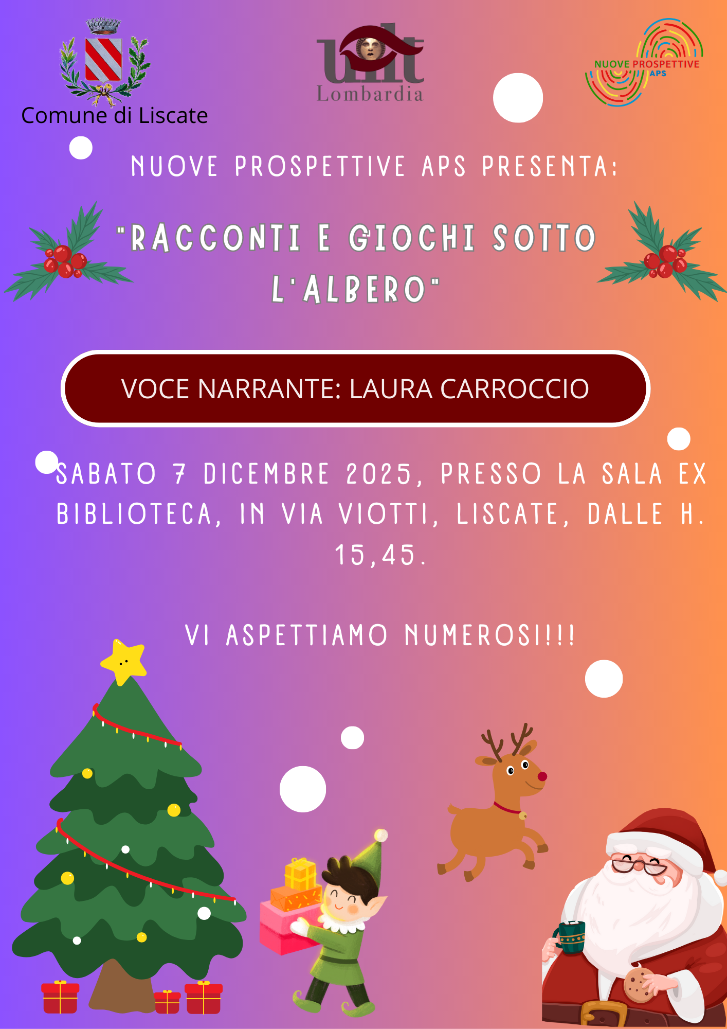“RACCONTI E GIOCHI SOTTO L’ALBERO” – Sabato 7 dicembre 2025 ore 15,45 presso la ex-Biblioteca di via Viotti