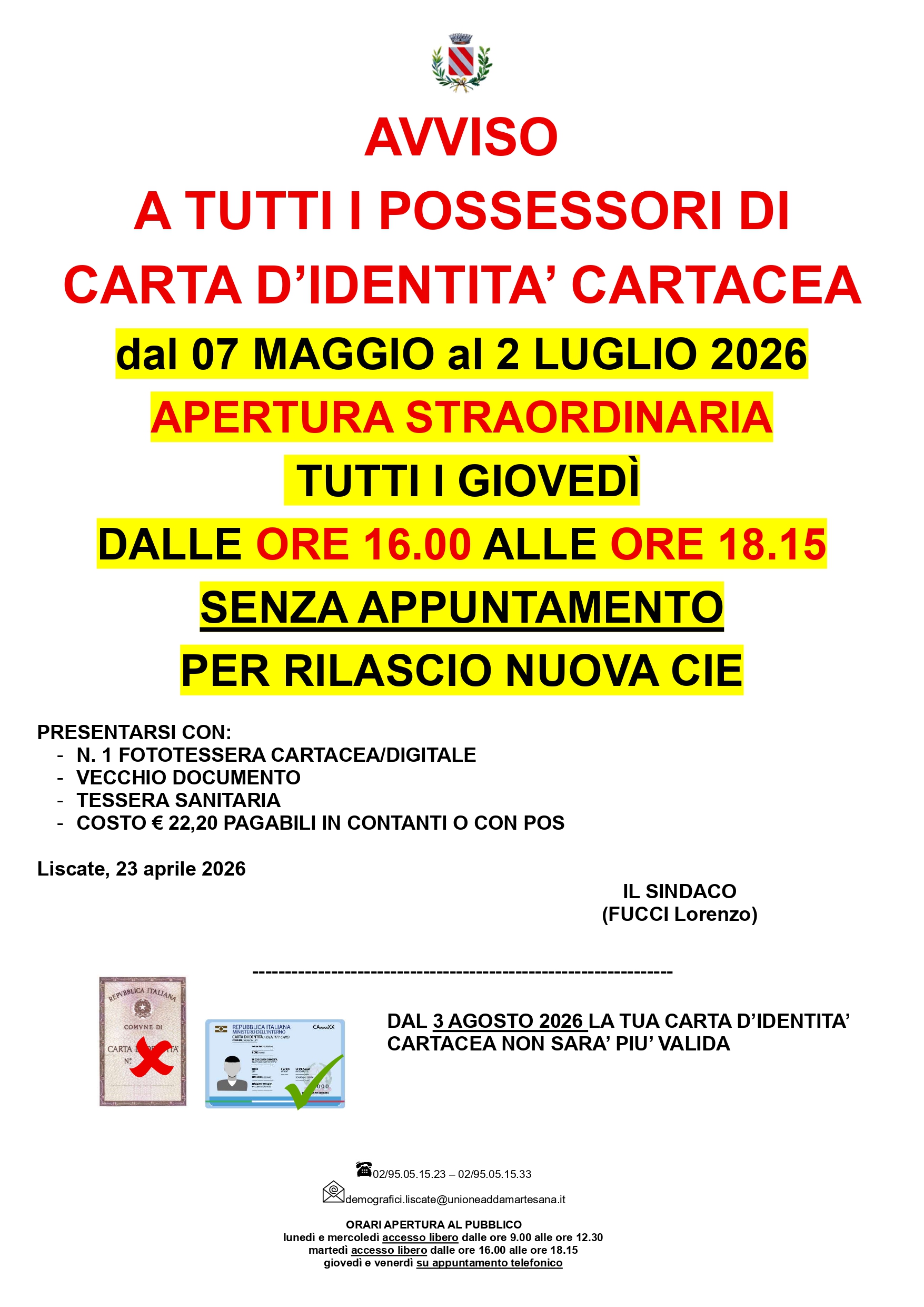 CONSIGLIO COMUNALE – Lunedì 27 aprile 2026 alle ore 21,00 nella Sala Auditorium presso il Civic Center Liscate