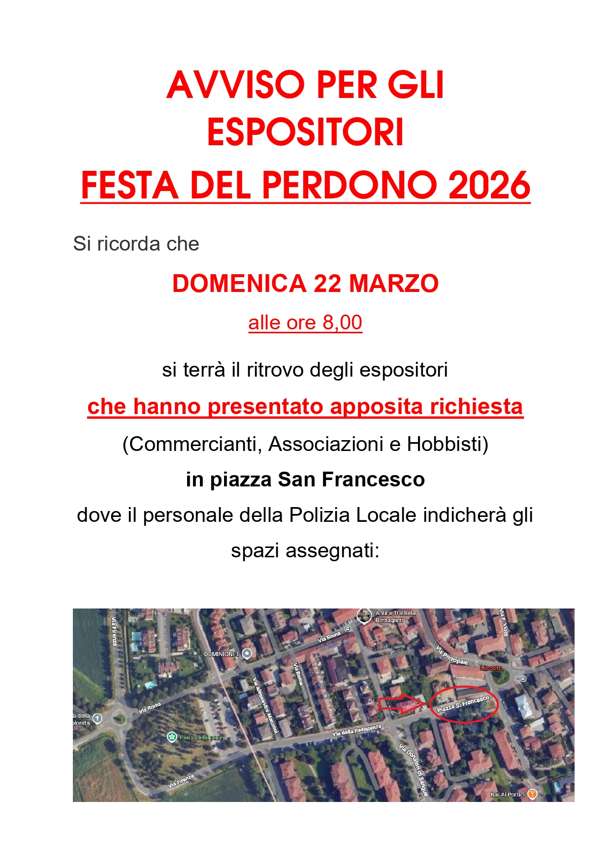 AVVISO PER GLI ESPOSITORI di DOMENICA 22 MARZO 2026 – ORARIO e LUOGO DI RITROVO
