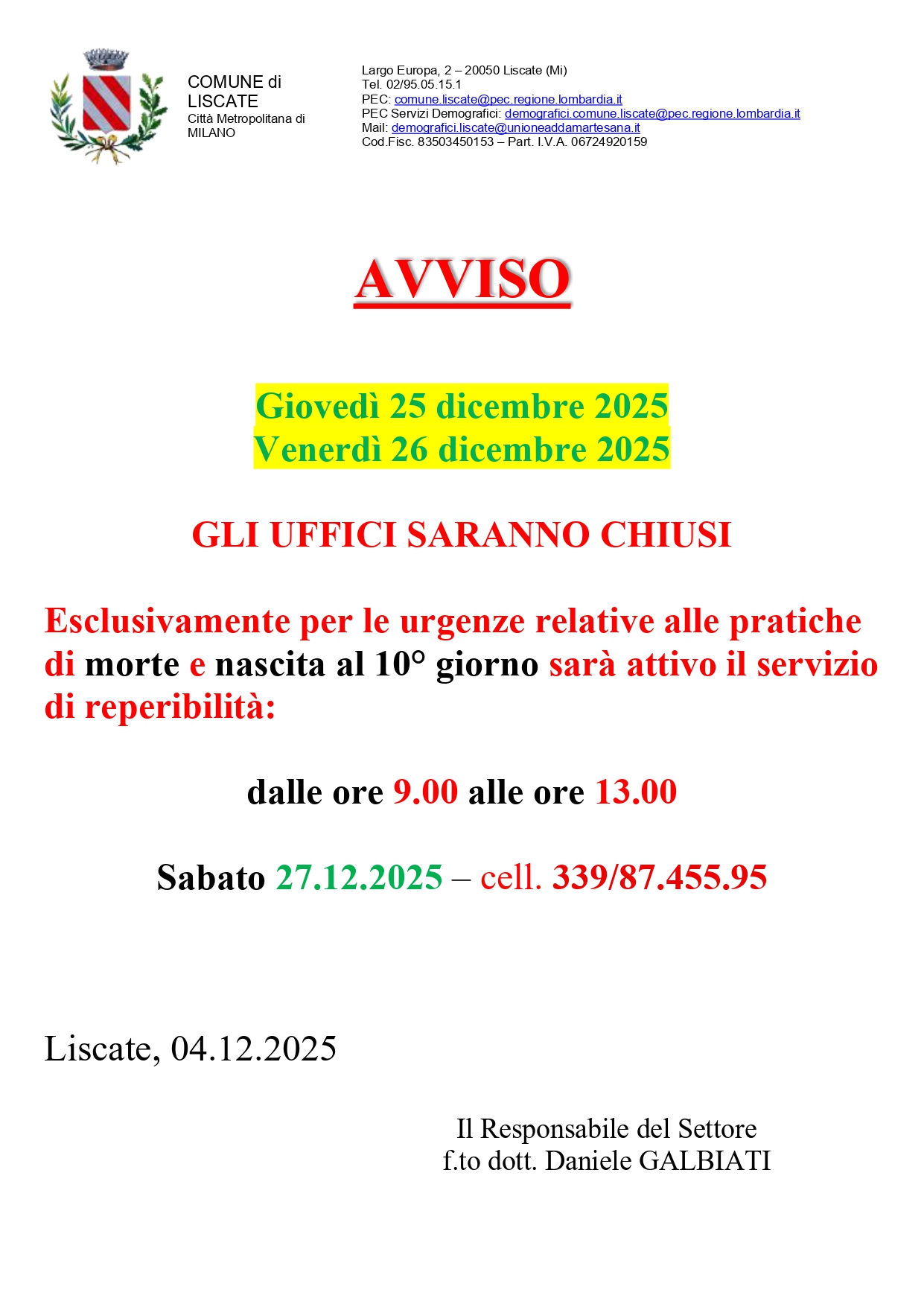 SCARICA “LISCATE INFORMA” – EDIZIONE DICEMBRE 2025 La copia cartacea dell’Informatore Comunale verrà distribuita nelle caselle postali di tutti i Cittadini, unitamente al nost [...]