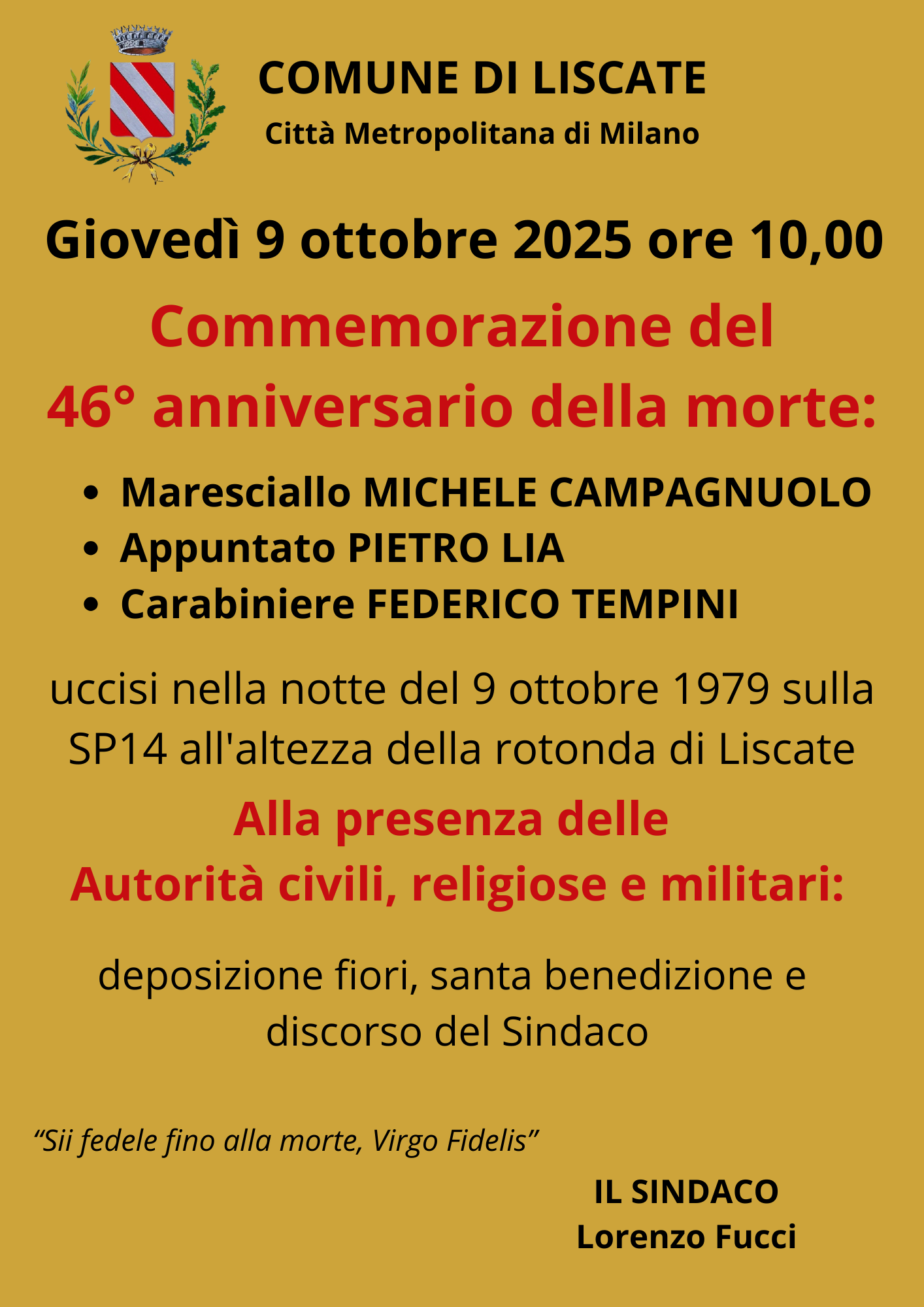 Commemorazione del 46° anniversario – Giovedì 9 ottobre ore 10,00