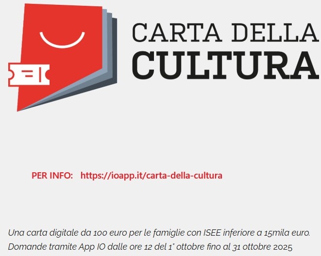 CARTA DELLA CULTURA – dal 1° ottobre al 31 ottobre 2025 esclusivamente tramite App IO